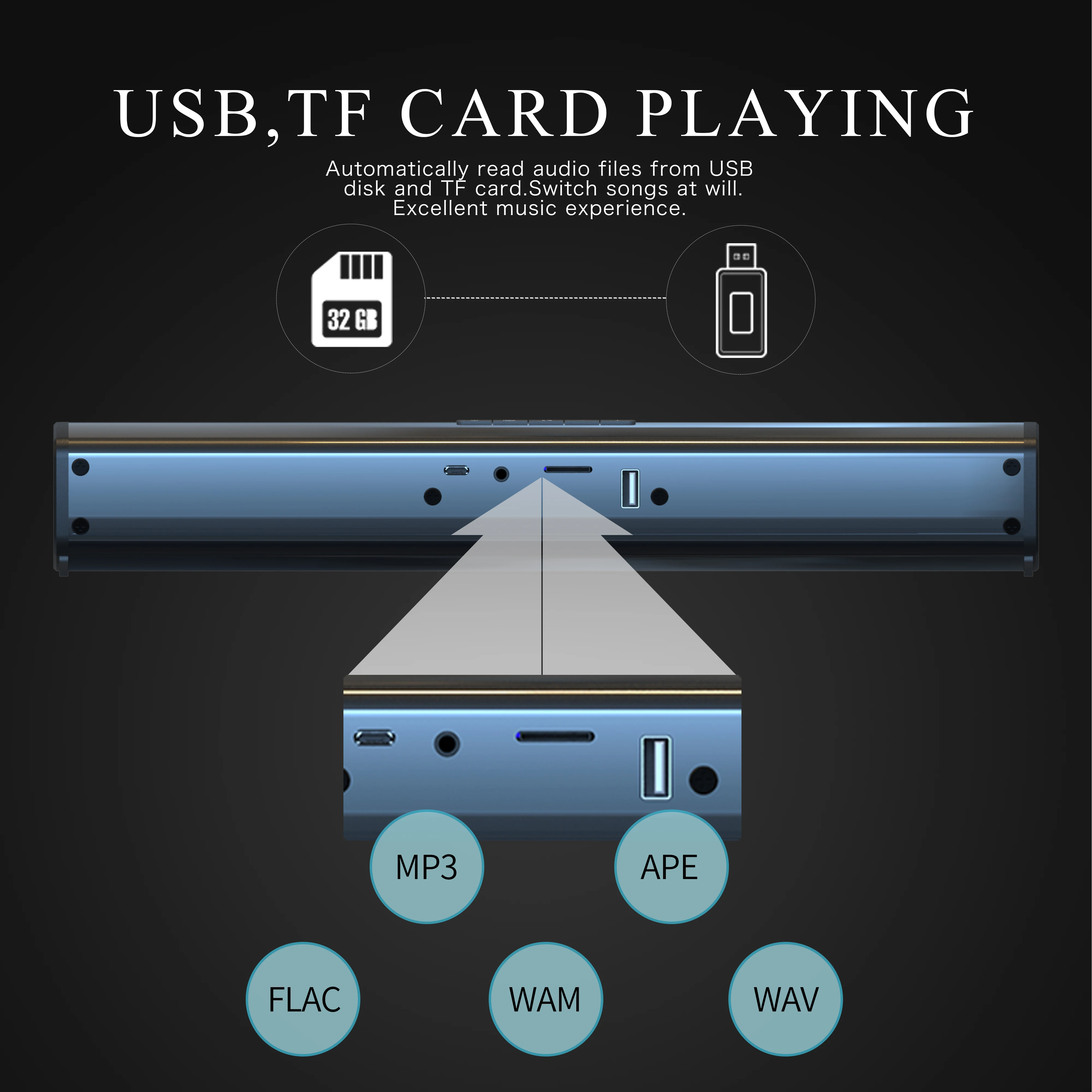 9. Audio Input: Bluetooth,3.5mm Aux, TF card,U_Disk