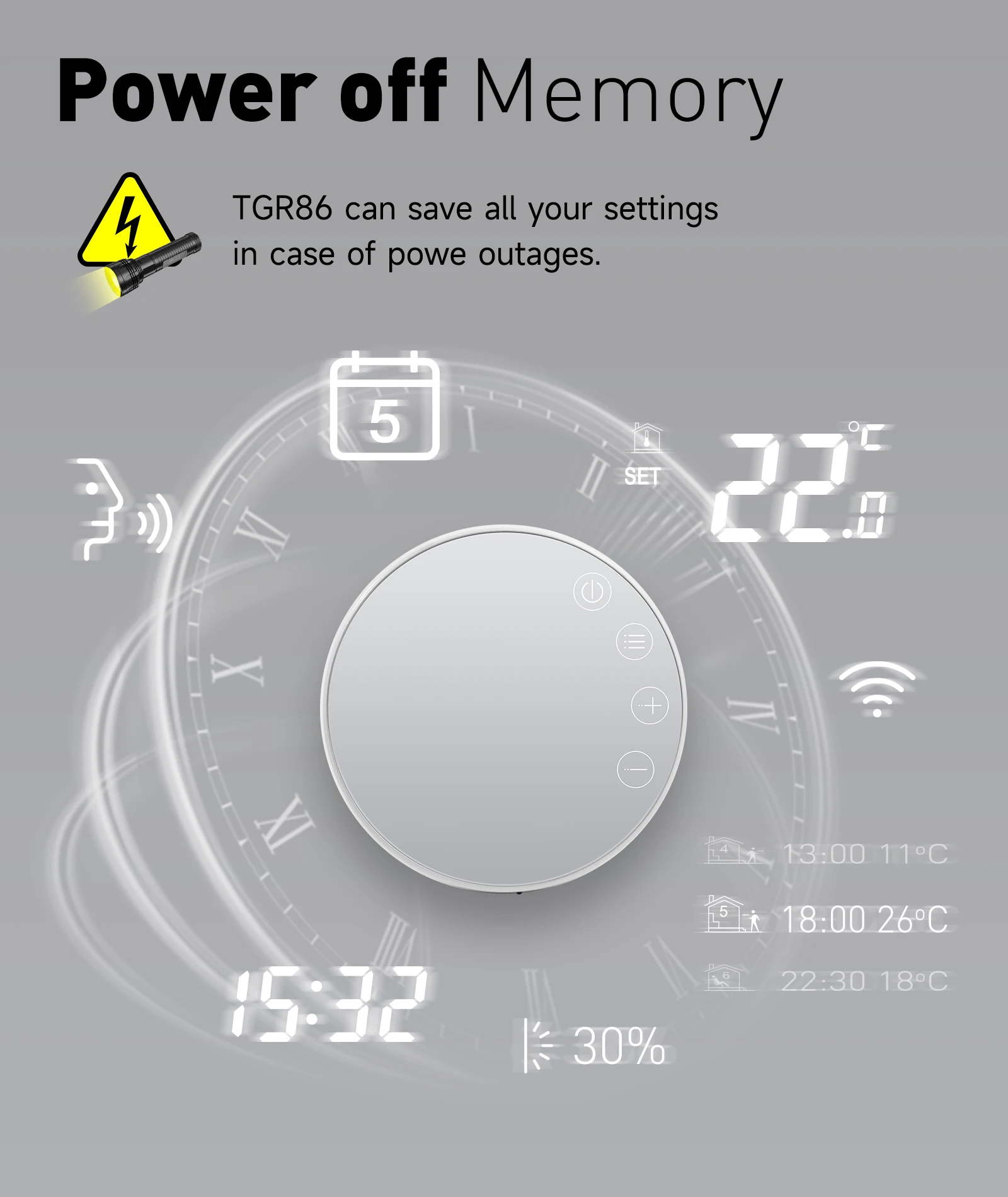 4.The minimum working temperature difference of this product is +-0.5℃, it can keep the temperature difference of your room within 1℃, making you feel more comfortable;