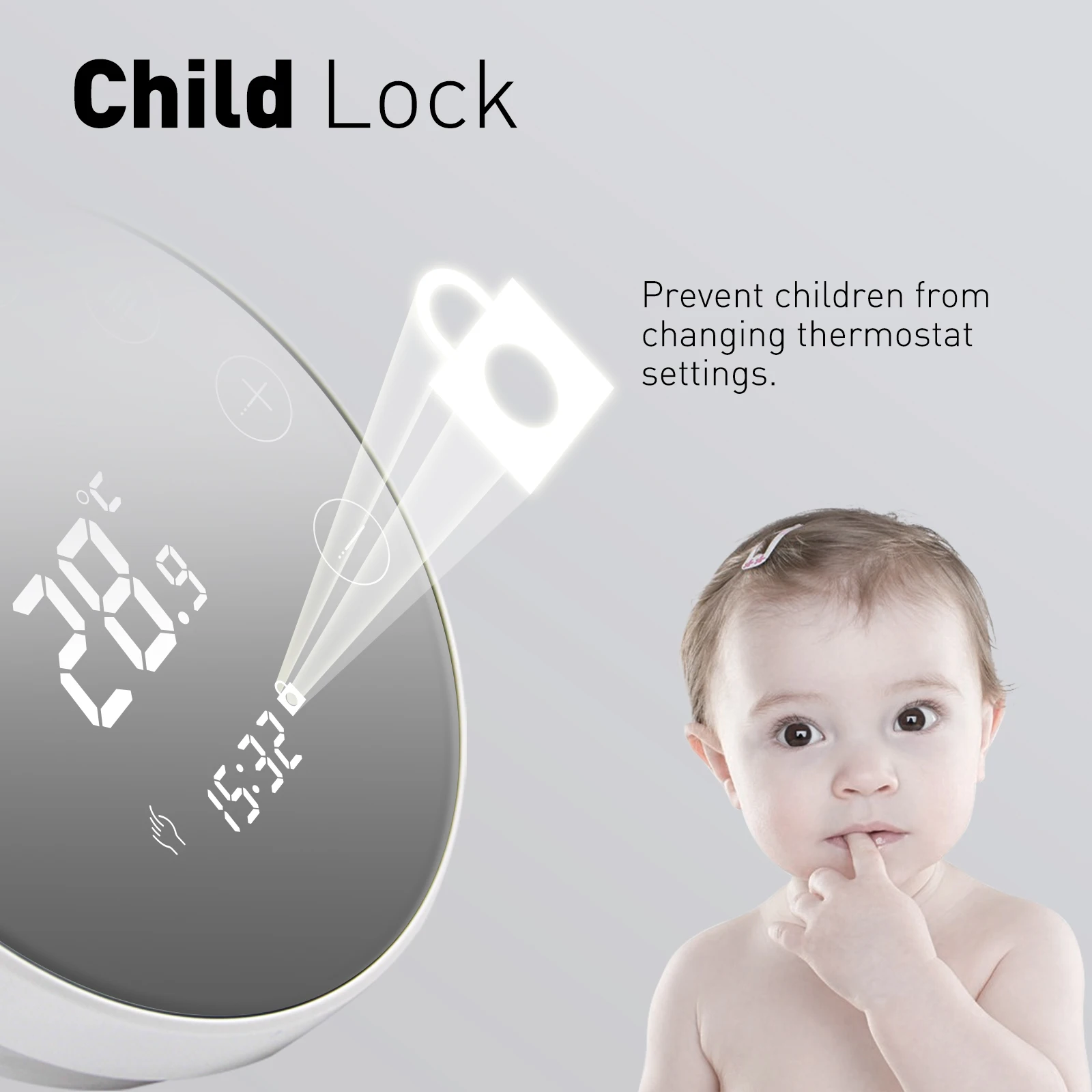 Child-Lock: Prevent kids from changing thermostat settings;