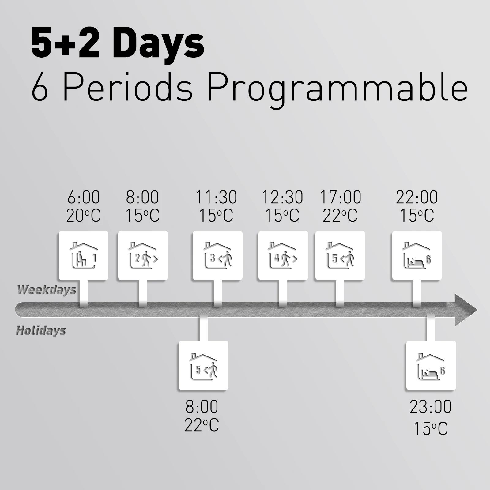 5. 5+2 or 6+1or 7days programmable function