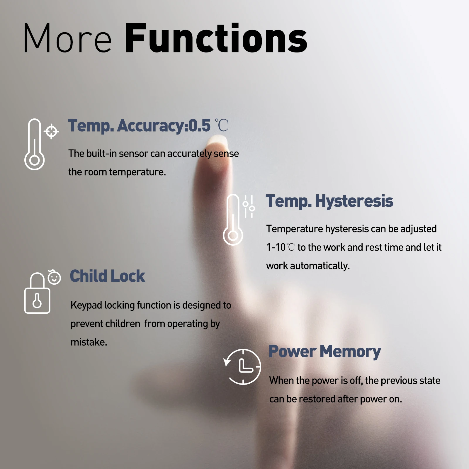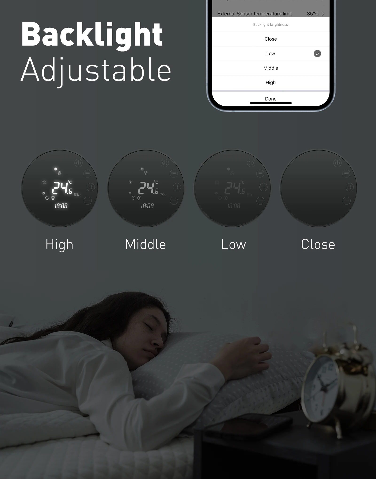 1.Three sensor modes can be setting (Floor sensor/air sensor/both)