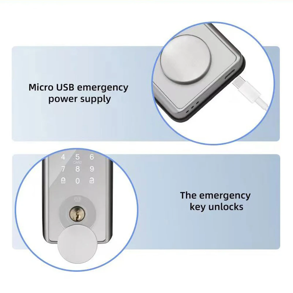 4. Quick and Accurate Unlocking: With its ergonomic design and semiconductor fingerprint sensor, this lock accurately identifies your fingerprint and unlocks in seconds, providing quick and easy access to your home. Also, when the battery is dead, you can use a backup key or connect a power bank via the USB Type-C port to temporarily supply power.