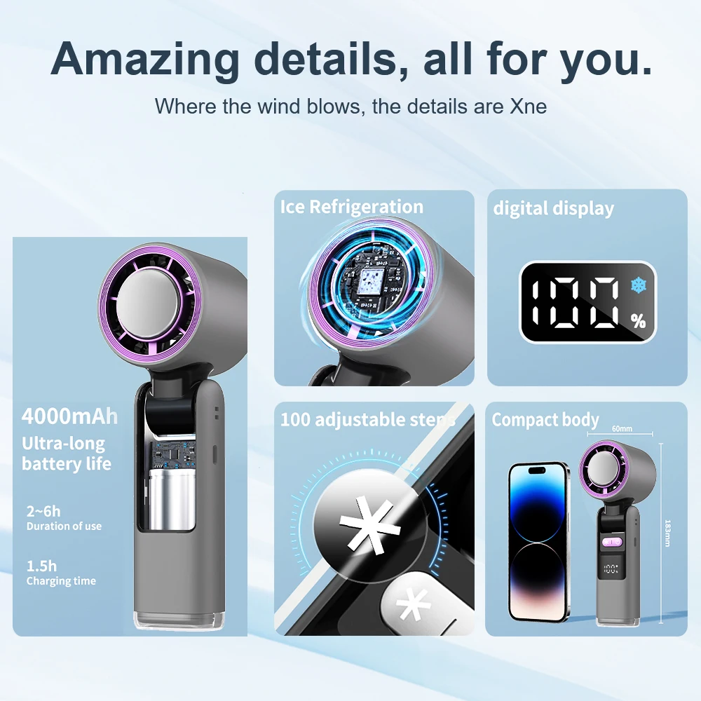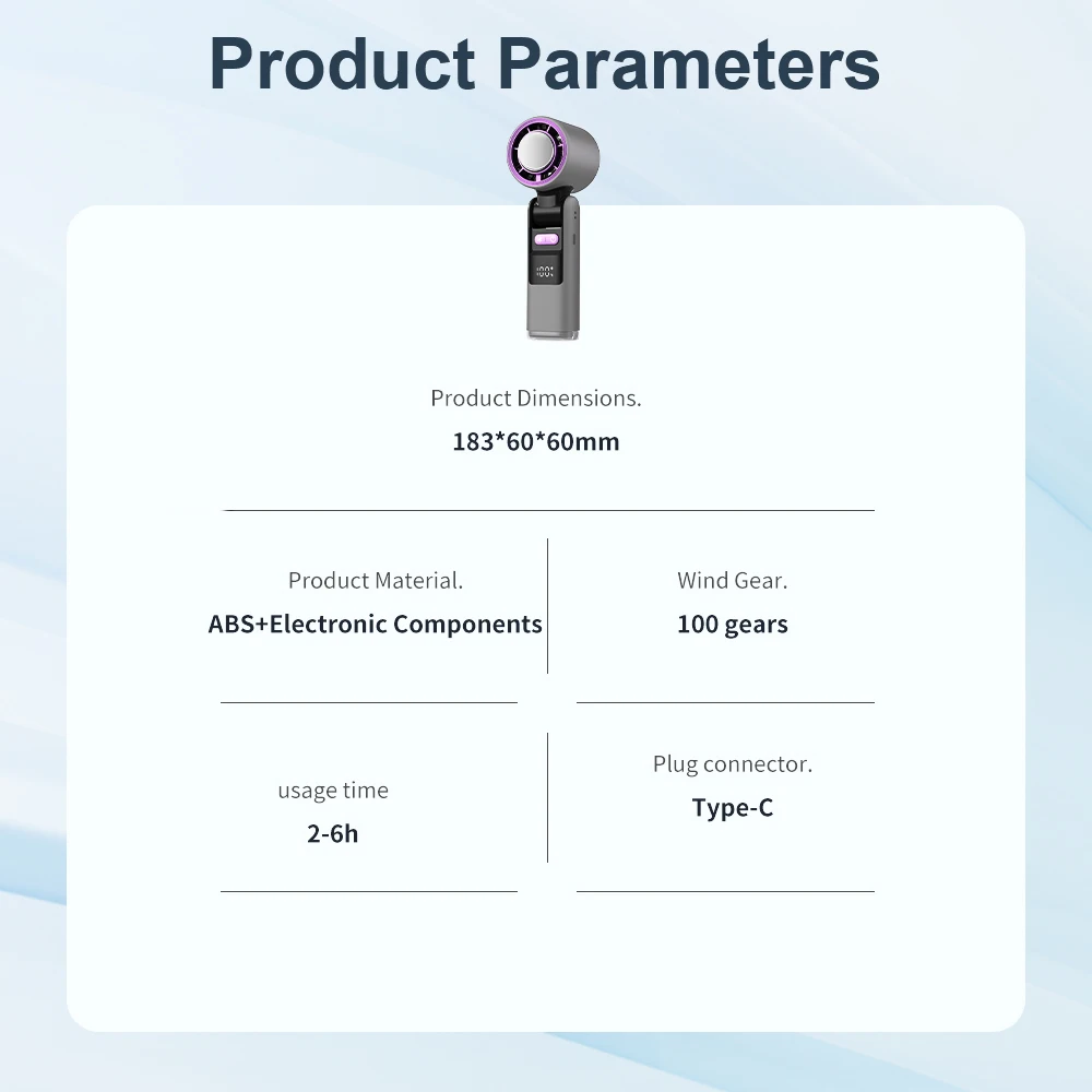 Customized Wind Speed By Yourself: Travel fan introduces a high-speed hair dryer similar motor, easy to adjust wind speed from 1-100 gears, meets your all needs. Turbocharged wind guide system, strong wind gathering, high-speed airflow gushing out, bringing incredible cooling experience, cooling speed increased by more than 3 times, great gift choice for travel