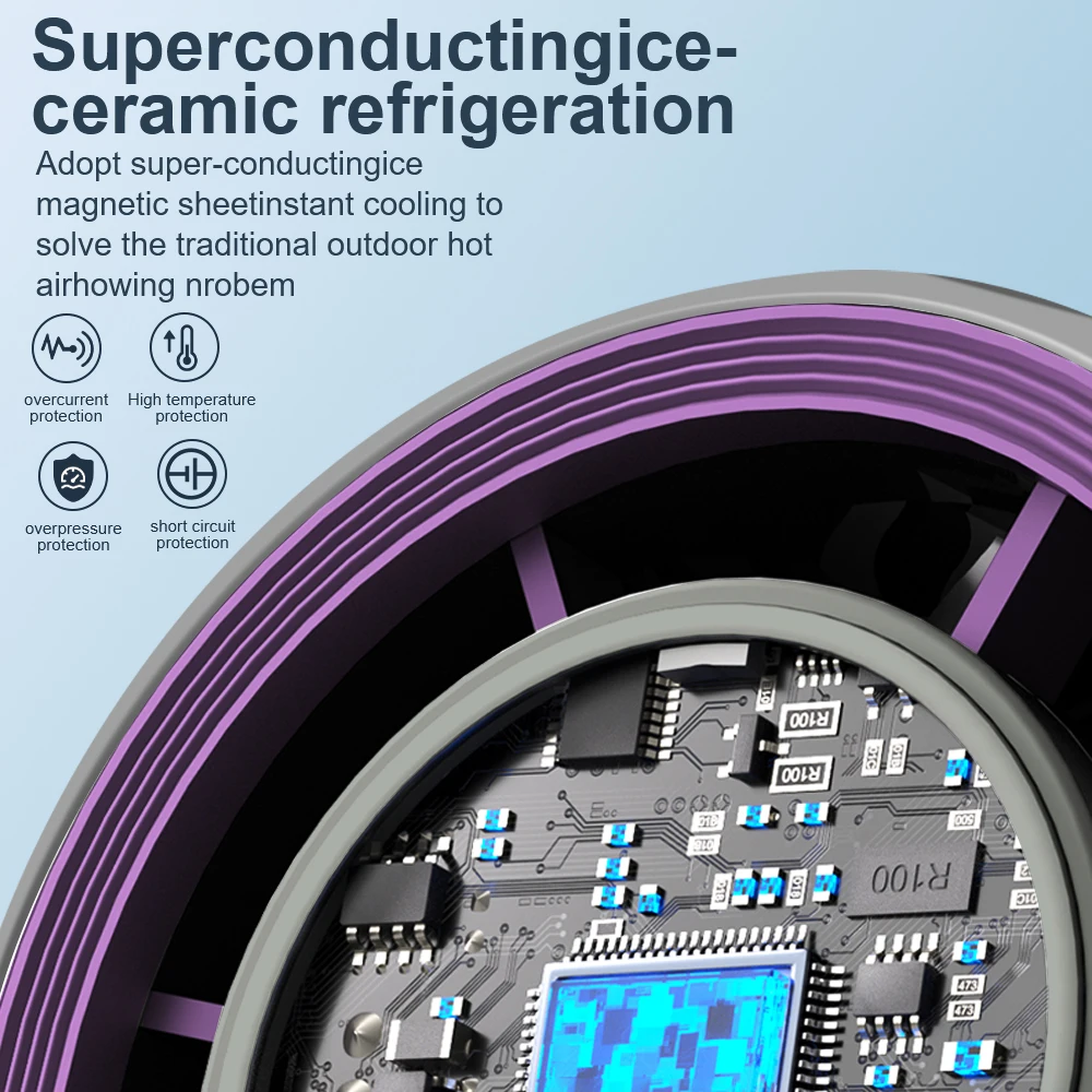 Revolutionize Your Comfort with Advanced Cooling Technology: Experience the future of personal cooling with our state-of-the-art handheld fan, designed to deliver unparalleled heat relief. Featuring cutting-edge instant-cool semiconductor technology, this fan acts like a portable cooling pad, offering an extra layer of defense against sweltering temperatures